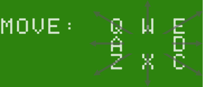Your goal is to survive by tricking the robots into crashing into each other or into the toxic debris piles left behind by their comrades’ misfortune. You move using the keys shown on the screen, allowing movement vertically, horizontally, or diagonally; the robots have the same movement options. You move first, then the robots move, and the cycle repeats. Try to stay several quanta ahead, then change direction so multiple robots attempt to occupy the same space. This results in their destruction.